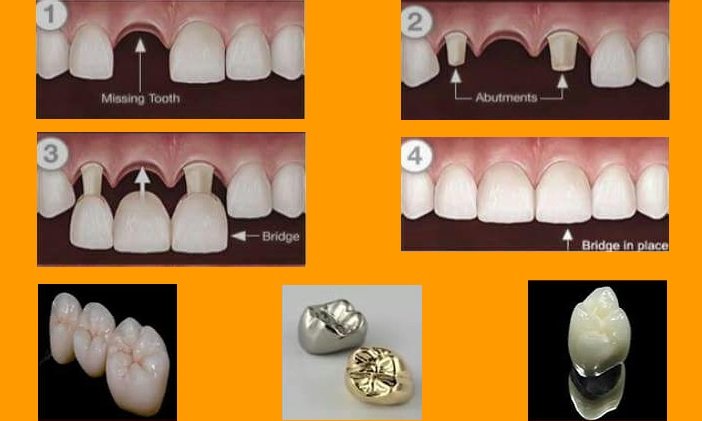 Fillings which are materials used to fill cavities in the teeth and crowns which slip over...